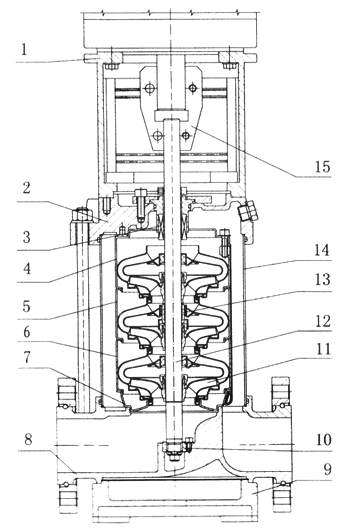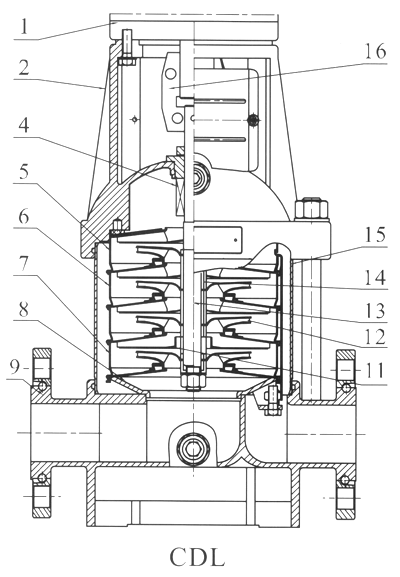 CDLF32,42,65,85立式不銹鋼衛生多級泵產品結構圖