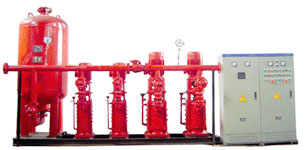 在消防供水狀態下,當壓力降到主消防泵啟動壓力P2時,主消防泵自動啟動向系統內供水。在主消防失靈而不能供水時,系統壓力繼續降到設計所允許的低供水壓力時,主消防泵自動啟動向系統內供水P1時,備用水泵自動啟動,確保消防正常供水。 | |