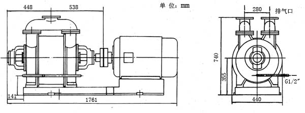 一、SK-12水環式真空泵的外形尺寸: