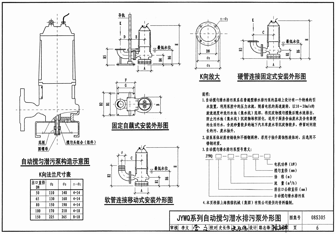 JYWQ系列自動攪勻潛水排污泵軟管硬管安裝外型圖: