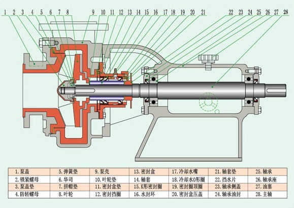 UHB-ZK型料漿泵,脫硫泵,砂漿泵,渣漿泵,壓濾泵密封結(jié)構(gòu)簡(jiǎn)圖及泵體結(jié)構(gòu)圖