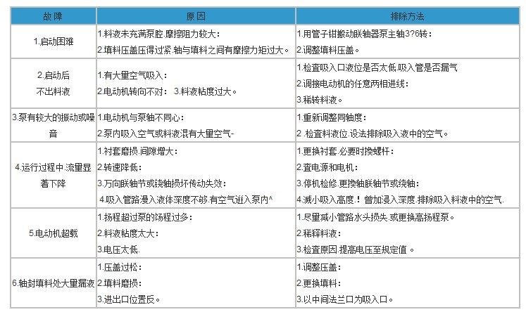 七、I-1B系列濃漿泵故障原因及排除方法