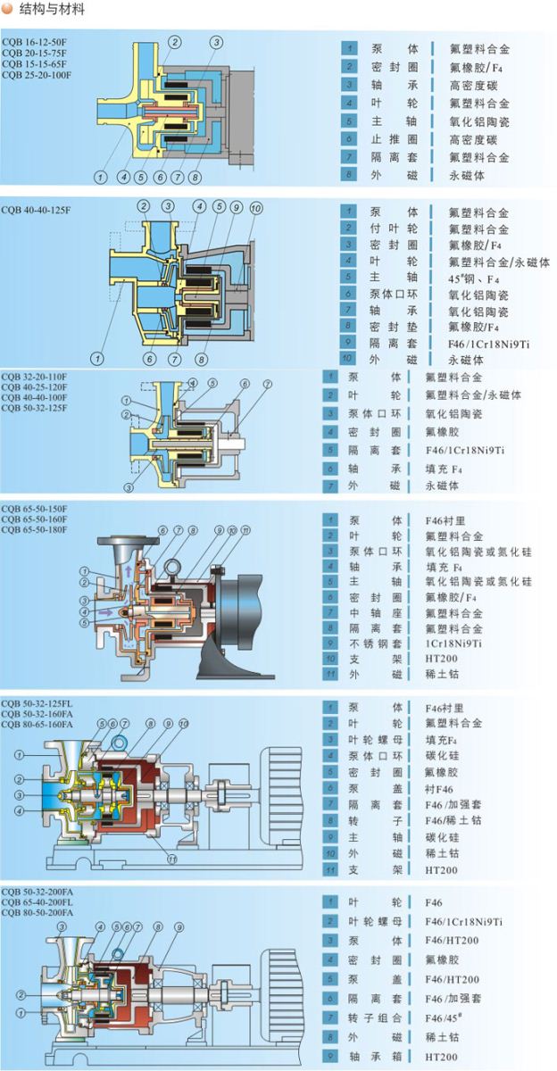 四、氟塑料磁力泵結構與材料