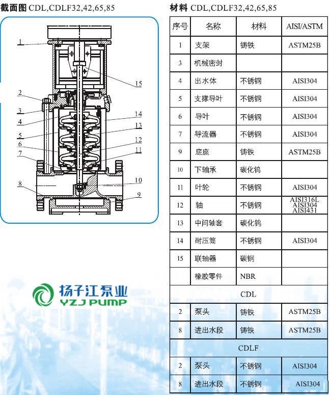CDLF系列輕型不銹鋼立式多級泵結構圖)