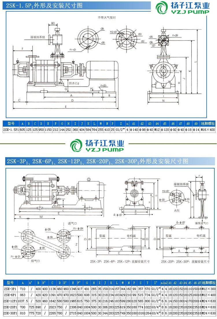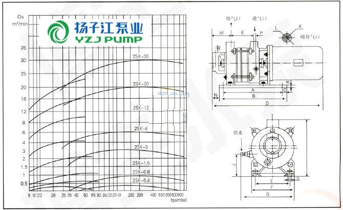 2SK-型兩級水環(huán)真空泵安裝尺寸: