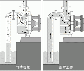 離心泵結(jié)構(gòu)簡單,操作容易,流量易于調(diào)節(jié),且能適用于多種特殊性質(zhì)物料,因此在工業(yè)生產(chǎn)中普遍被采用。 (1)離心泵的構(gòu)造 ①葉輪:作用是將能量傳給液體。按有無蓋板分為開式、閉式和半開式; ②泵殼:作用是收集被葉輪拋出的液體,并將部分動能轉(zhuǎn)換成壓強(qiáng)能; ③泵軸:作用是將電機(jī)的輸出功傳給葉輪。  (2)離心泵的工作原理 ①葉輪被泵軸帶動旋轉(zhuǎn),對位于葉片間的流體做功,流體受離心力的作用,由葉輪中心被拋向外圍; ②泵殼匯集從各葉片間被拋出的液體,這些液體在殼內(nèi)順著蝸殼形通道逐漸擴(kuò)大的方向流動,使流體的部分動能轉(zhuǎn)化為壓強(qiáng)能,以減小輸送過程中的能量損失; ③葉輪高速旋轉(zhuǎn),迫使葉輪中心的液體以很高的速度被拋開,從而在葉輪中心形成低壓,低位槽中的液體因此被源源不斷地吸上。 “氣縛現(xiàn)象”:如果離心泵在啟動前殼內(nèi)充滿的是氣體,則啟動后葉輪中心氣體被拋時不能在該處形成足夠大的真空度,這樣槽內(nèi)液體便不能被吸上。這一現(xiàn)象稱為氣縛。為防止氣縛現(xiàn)象的發(fā)生,離心泵啟動前要用外來的液體將泵殼內(nèi)空間灌滿。這一步操作稱為灌泵。為防止灌入泵殼內(nèi)的液體因重力流入低位槽內(nèi),在泵吸入管路的入口處裝有止逆閥(底閥);如果泵的位置低于槽內(nèi)液面,則啟動時無需灌泵。 ④泵內(nèi)液體能量轉(zhuǎn)換效率高葉輪外周安裝導(dǎo)輪,使。導(dǎo)輪是位于葉輪外周的固定的帶葉片的環(huán)。這此葉片的彎曲方向與葉輪葉片的彎曲方向相反,其彎曲角度正好與液體從葉輪流出的方向相適應(yīng),引導(dǎo)液體在泵殼通道內(nèi)平穩(wěn)地改變方向,使能量損耗小,動壓能轉(zhuǎn)換為靜壓能的效率高。 ⑤后蓋板上的平衡孔消除軸向推力。離開葉輪周邊的液體壓力已經(jīng)較高,有一部分會滲到葉輪后蓋板后側(cè),而葉輪前側(cè)液體入口處為低壓,因而產(chǎn)生了將葉輪推向泵入口一側(cè)的軸向推力。這容易引起葉輪與泵殼接觸處的磨損,嚴(yán)重時還會產(chǎn)生振動。平衡孔使一部分高壓液體泄露到低壓區(qū),減輕葉輪前后的壓力差。但由此也會此起泵效率的降低。 |
