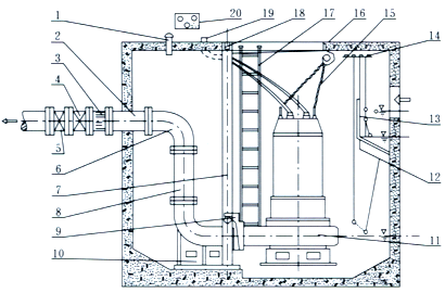 JYWQ自動(dòng)攪勻排污泵自動(dòng)藕合式安裝示意圖