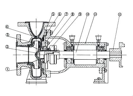 IHF氟塑料襯里離心泵結構圖