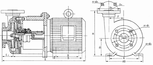 PF(FS)型系列化工泵為直聯(lián)式結(jié)構(gòu),由泵體及托架與電機(jī)法蘭聯(lián)接,托架支承泵體,葉輪通過軸與電機(jī)直聯(lián)。該系列泵的特點(diǎn):結(jié)構(gòu)簡單緊湊、零件少、性能好。泵的旋轉(zhuǎn)方向,自吸入口向電機(jī)方向看為順時(shí)針方向旋轉(zhuǎn),泵出口垂直向上。 泵的密封,選用聚四氟乙烯(F4)波紋管,外裝式耐腐蝕機(jī)械密封。