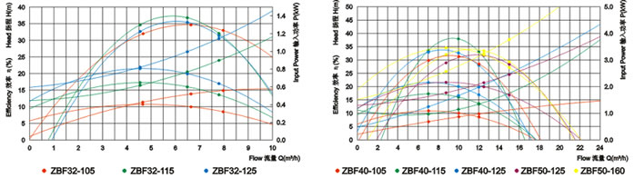 ZBF自吸式塑料磁力泵性能曲線: