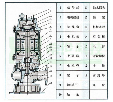 WQ型系列無堵塞潛水污水泵解剖圖