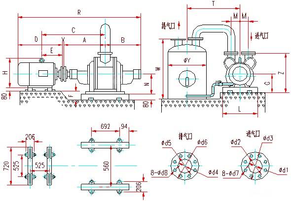 | 代號 | R | Z | d1 | d2 | d3 | d4 | d5 | d6 | d7 | d8 | F | E | 地腳螺栓 |