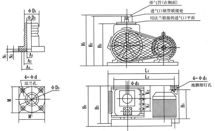 注:安裝時應小心,防止鐵屑、污物、塵埃等落入旋片真空泵內.