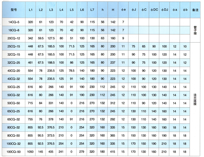 注:表中16CQ-8---100CQ-50都可配防爆電機 |
