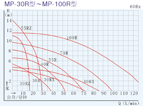 MP型磁力驅(qū)動循環(huán)泵性能曲線圖
