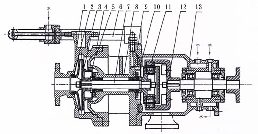 6、泵運(yùn)行1500小時(shí)后,應(yīng)拆檢軸承和端面動環(huán)的磨損情況,并更換不宜再用的易損件。