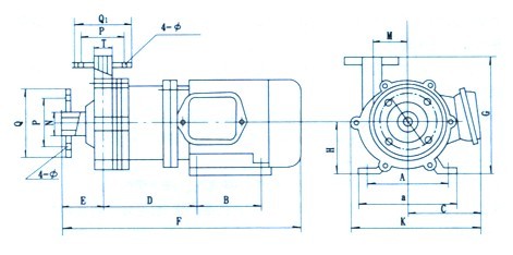 | 型號 | a | b | c | d | e | f | g | h | j | a | k | m | n | 機座 螺孔 | p | p1 | q | q1 | φ | φ | 管 子 連 接 |